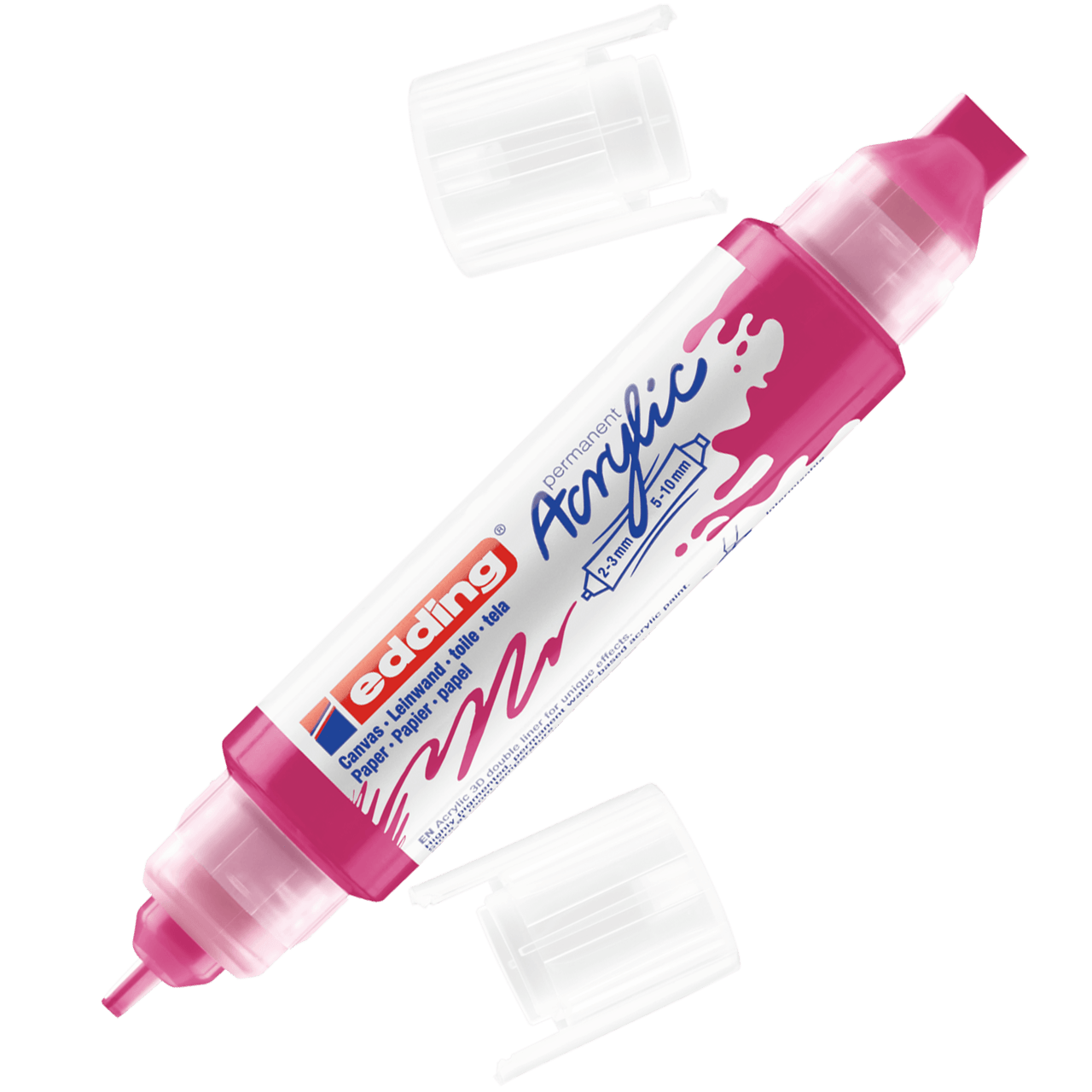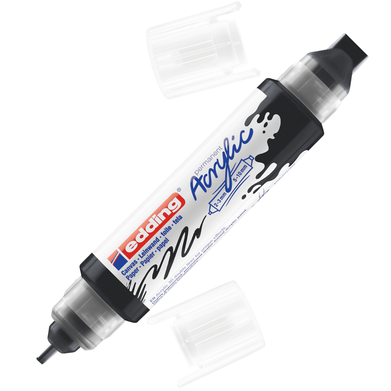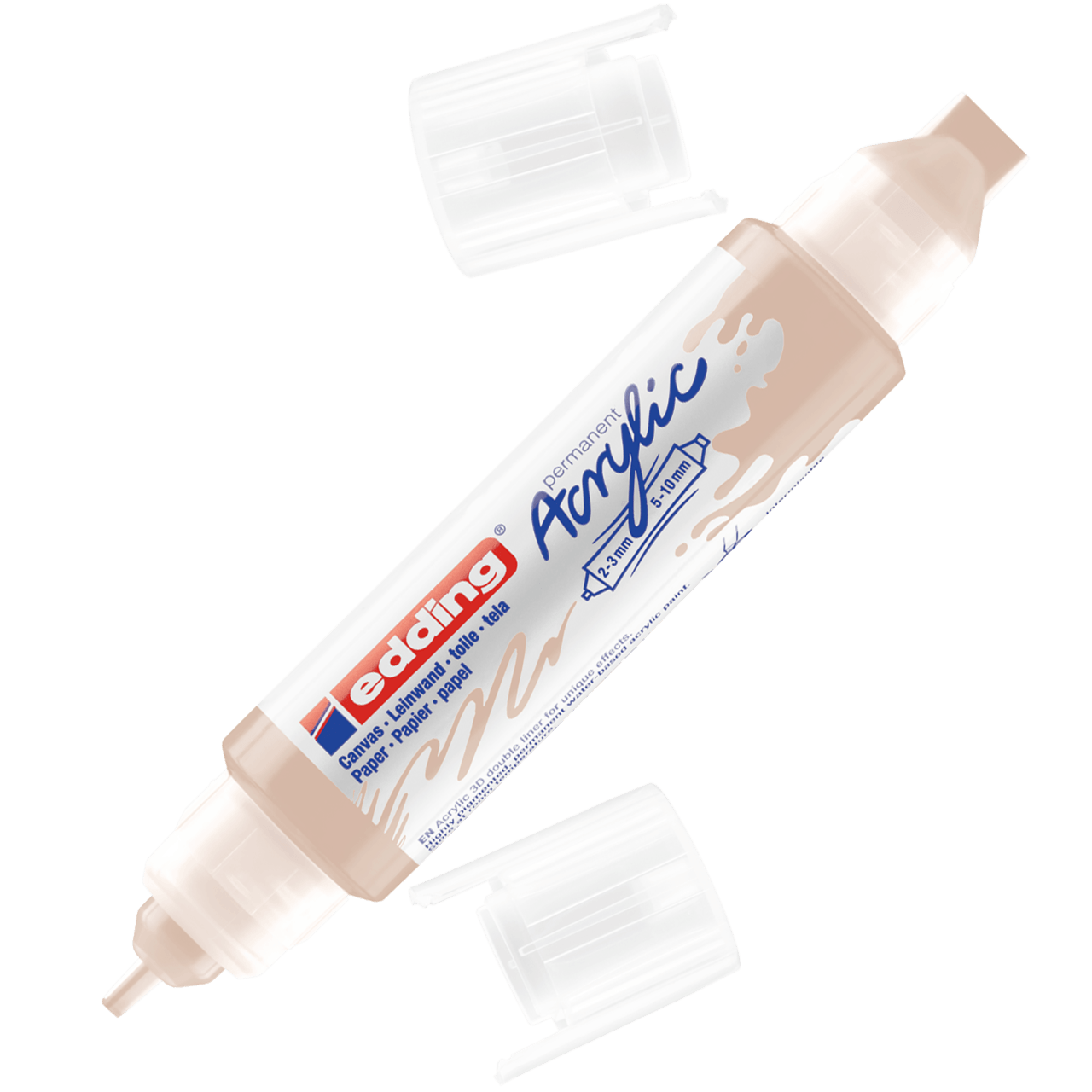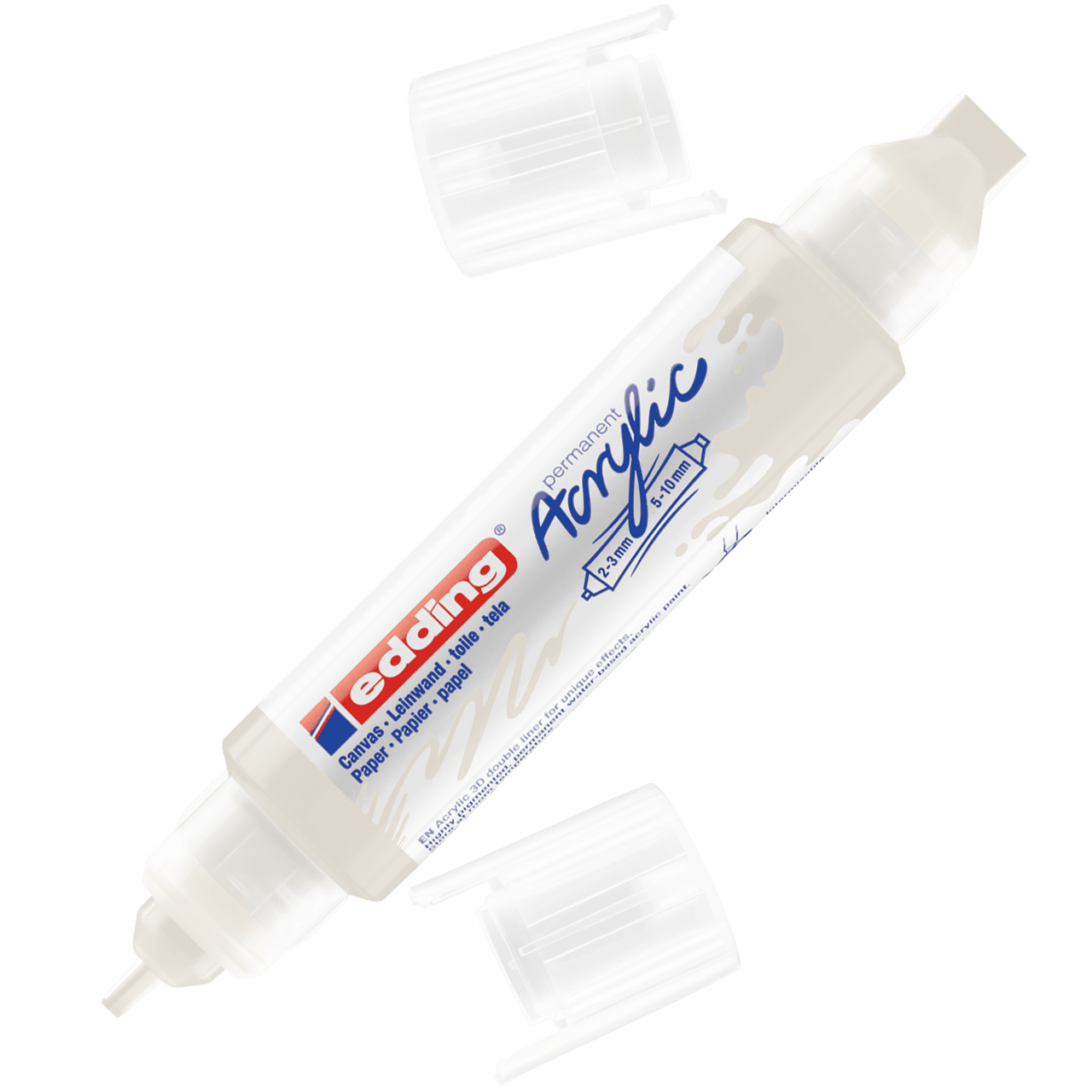 La última invención de edding llega allá donde los marcadores acrílicos se detienen. Gracias a las dos puntas de tamaños diferentes, podrás vivir una experiencia creativa completamente única con la pintura acrílica con solo presionar el envase en forma de tubo. Gracias a las dos boquillas de tamaños diferentes, podrás aplicar y utilizar la cantidad de pasta que desees. Aplícala sola para aportar plasticidad a tu obra de arte. También es posible aplicar la pintura con un pincel. ¡Las posibilidades son infinitas!El rotulador acrílico 3D de punta doble contiene pintura acrílica altamente pigmentada, permanente y mezclable en calidad artista. La paleta de colores contiene 26 colores. ¡Su luminosidad y efectos te servirán de inspiración! Están disponibles en tres grados diferentes de cobertura (opaco, semiopaco y transparente), lo que permite aplicar una amplia variedad de técnicas de pintura.
