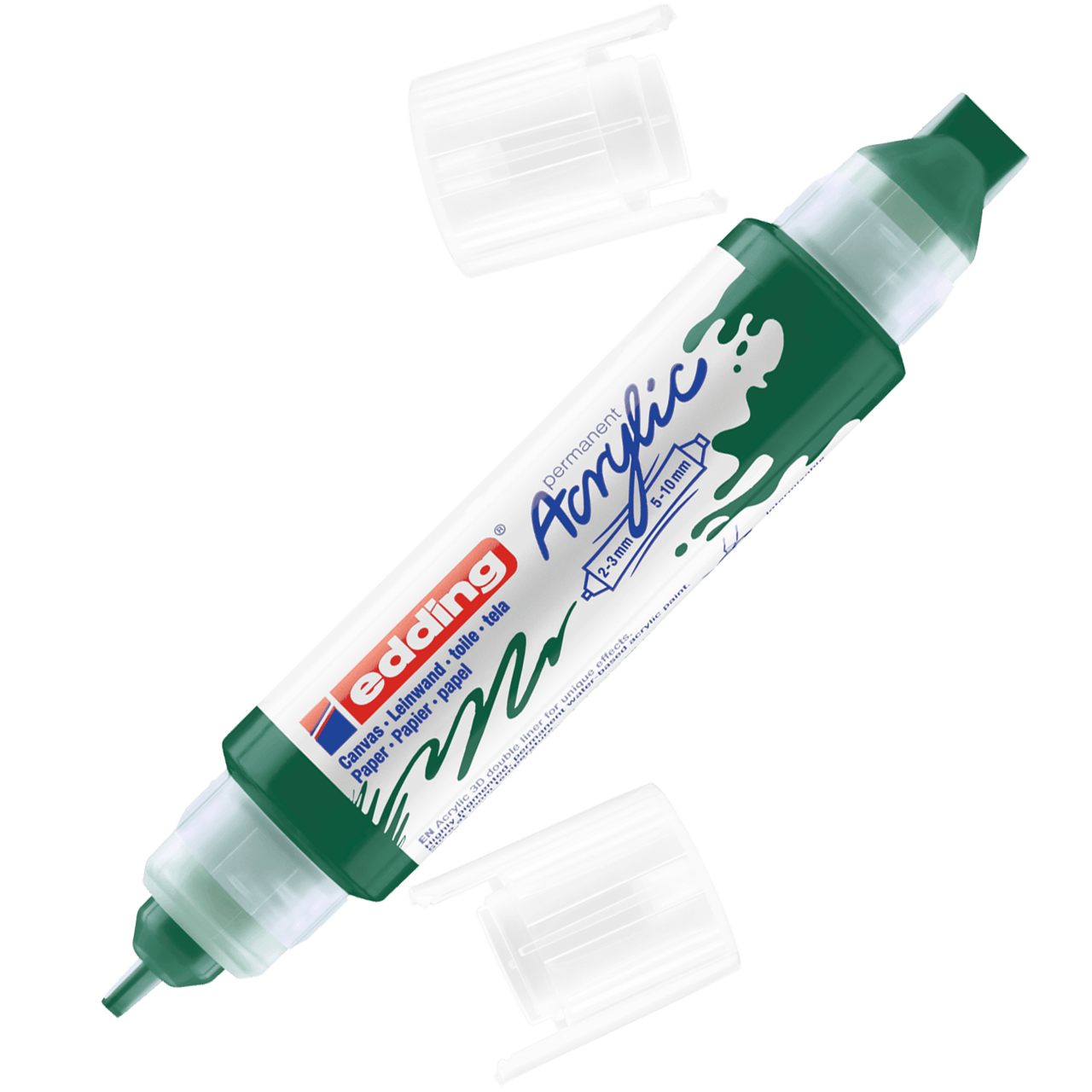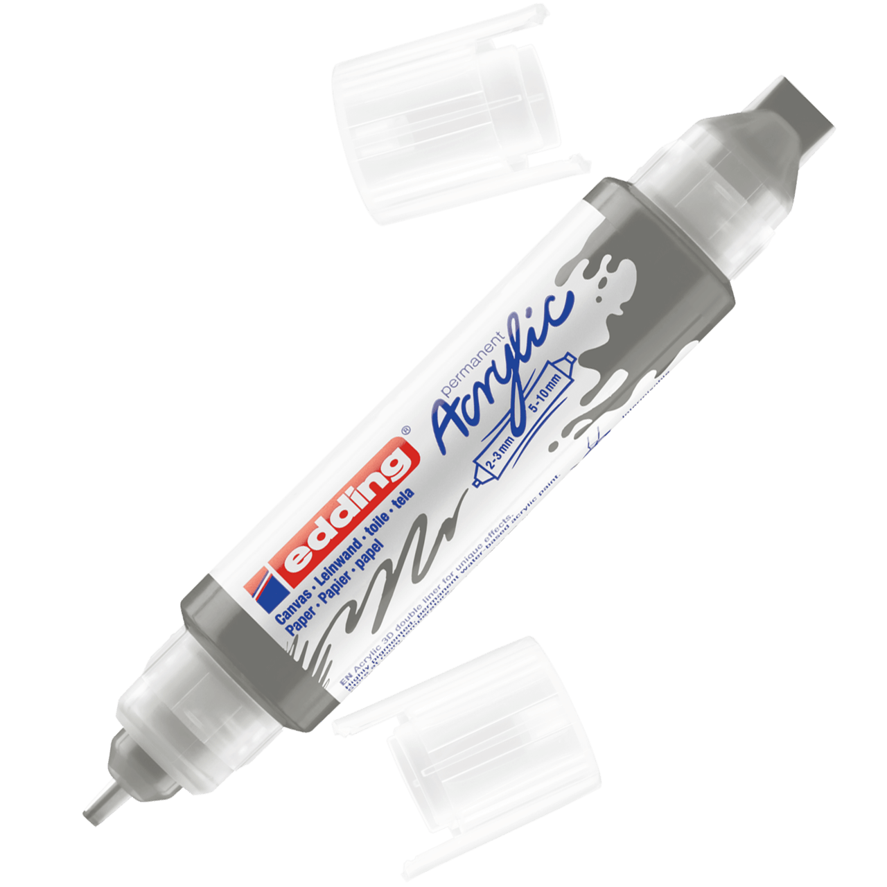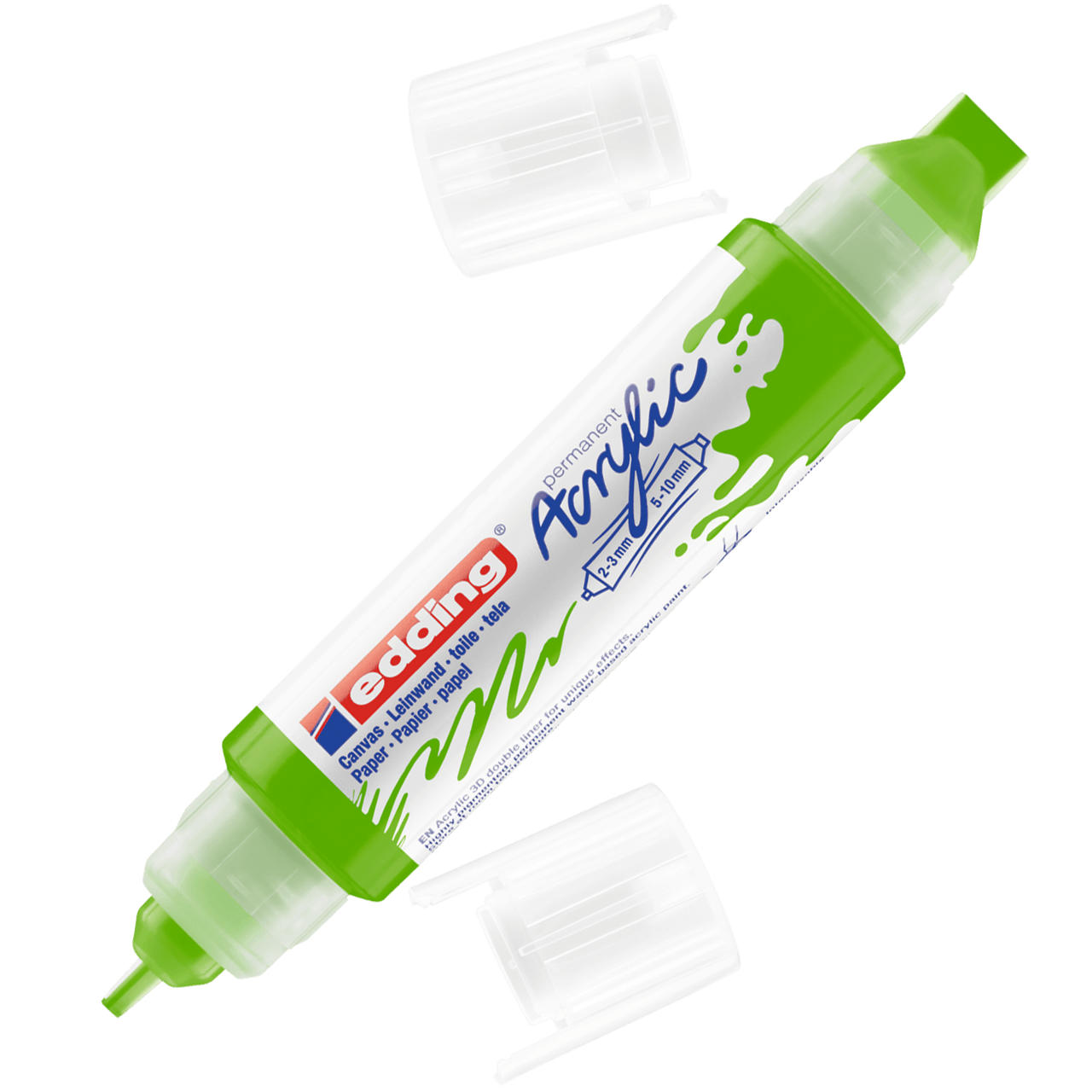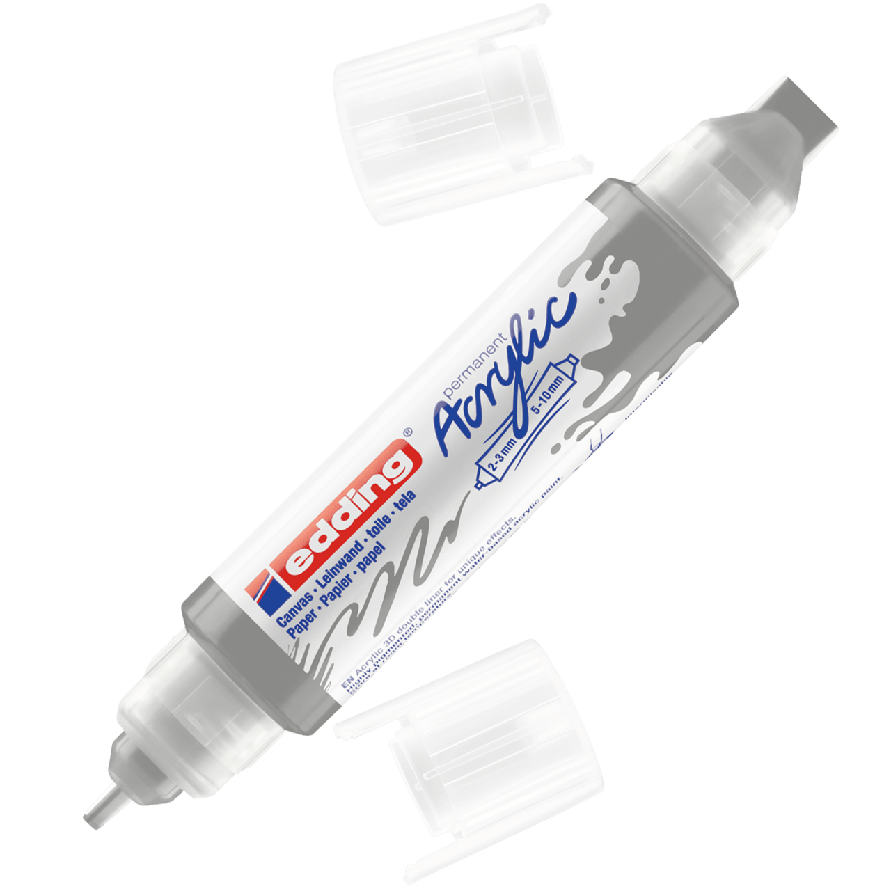 La última invención de edding llega allá donde los marcadores acrílicos se detienen. Gracias a las dos puntas de tamaños diferentes, podrás vivir una experiencia creativa completamente única con la pintura acrílica con solo presionar el envase en forma de tubo. Gracias a las dos boquillas de tamaños diferentes, podrás aplicar y utilizar la cantidad de pasta que desees. Aplícala sola para aportar plasticidad a tu obra de arte. También es posible aplicar la pintura con un pincel. ¡Las posibilidades son infinitas!El rotulador acrílico 3D de punta doble contiene pintura acrílica altamente pigmentada, permanente y mezclable en calidad artista. La paleta de colores contiene 26 colores. ¡Su luminosidad y efectos te servirán de inspiración! Están disponibles en tres grados diferentes de cobertura (opaco, semiopaco y transparente), lo que permite aplicar una amplia variedad de técnicas de pintura.
