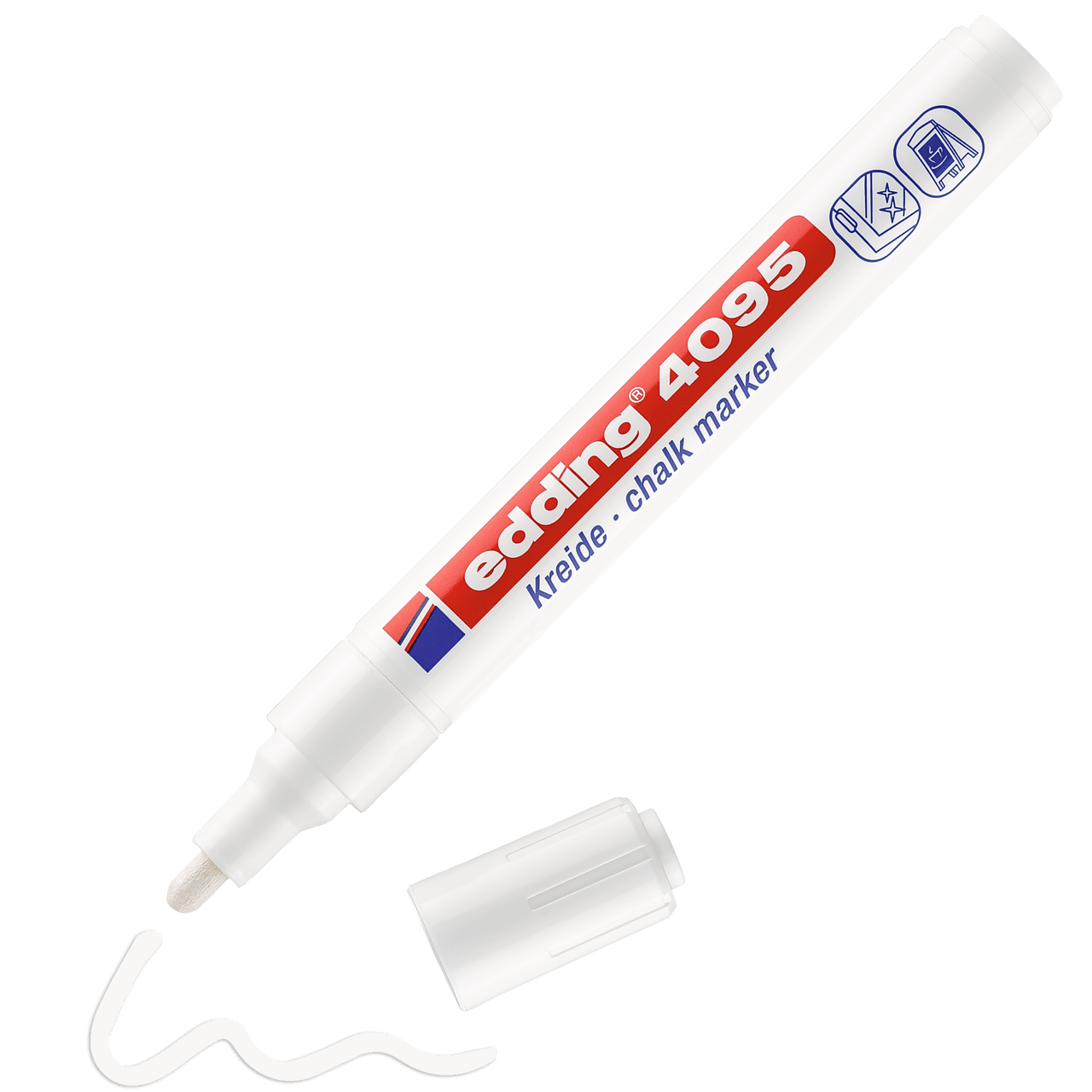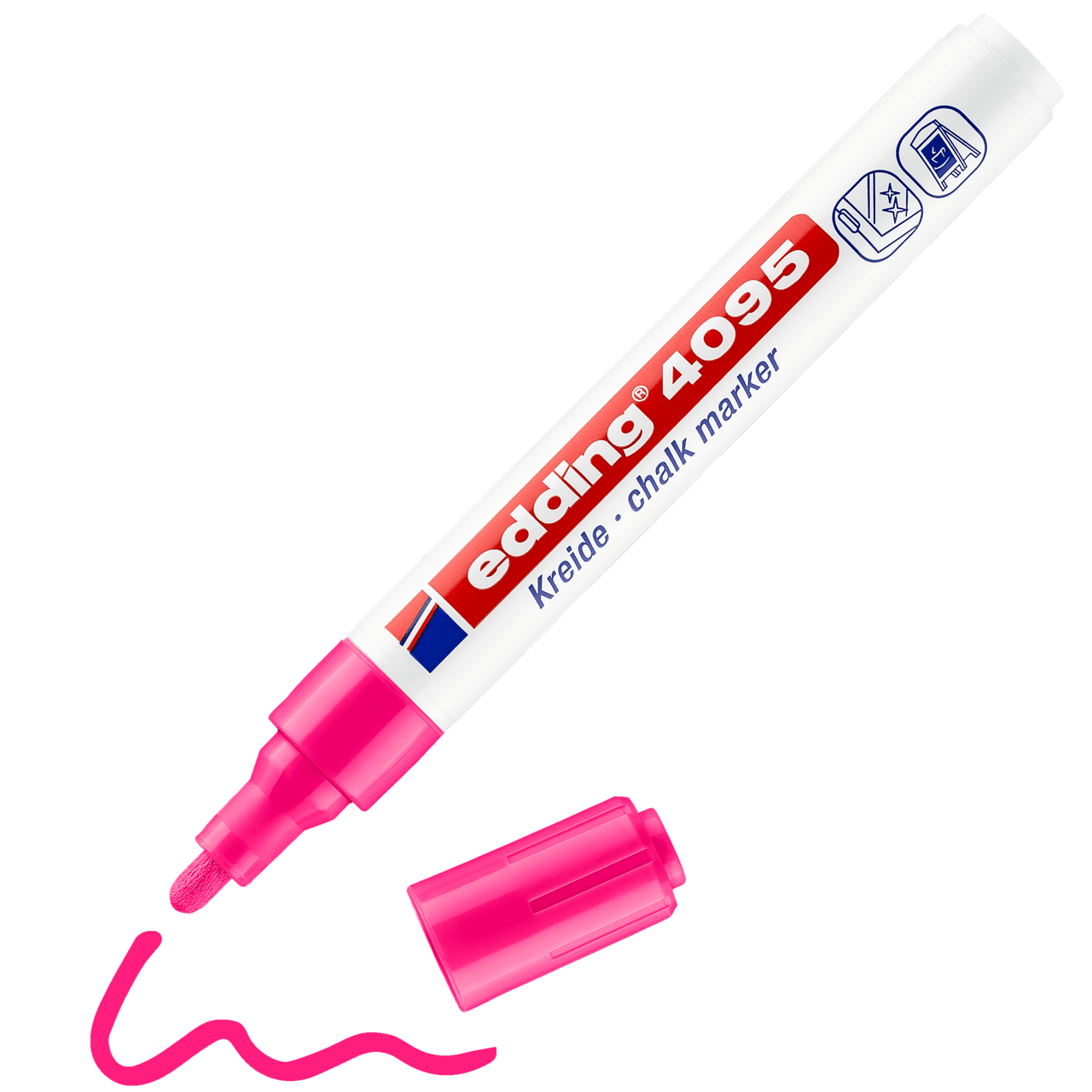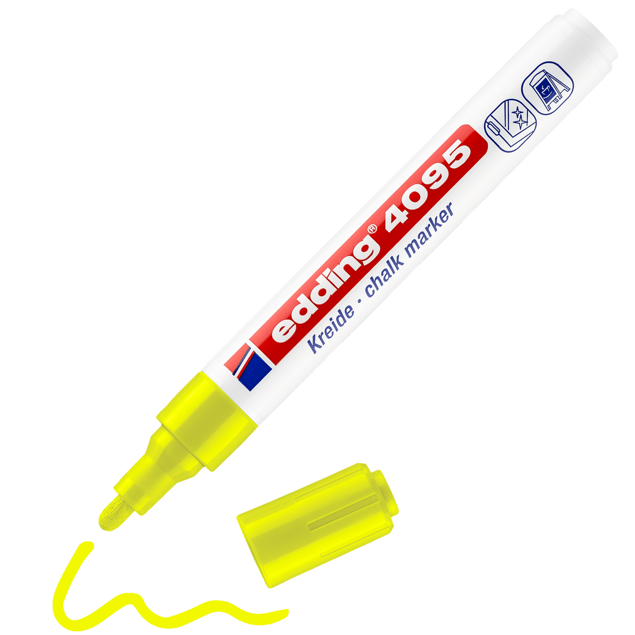 A veces es difícil encontrar la herramienta adecuada para marcar o escribir con tiza de manera precisa. Pero no con el marcador de tiza edding 4095: su punta redonda aplica la tiza líquida de gran cobertura y permite marcar con nitidez sobre superficies lisas, como pizarras, espejos y vidrio. Este edding no solo es adecuado para las manualidades creativas en el hogar, sino que también es la herramienta preferida en algunas actividades comerciales, como los restaurantes, los bares o la industria del vidrio.Los colores permanecen nítidos sobre la superficie y, no obstante, se pueden limpiar fácilmente con un paño húmedo. Con una amplia gama de colores, el marcador de tiza edding 4095 es tan versátil como diversos son sus usos.