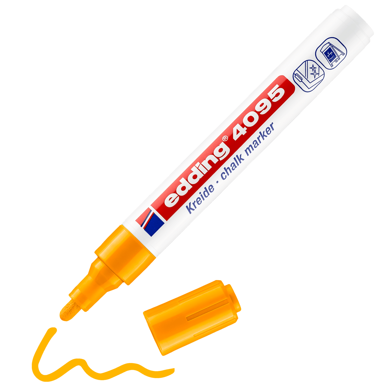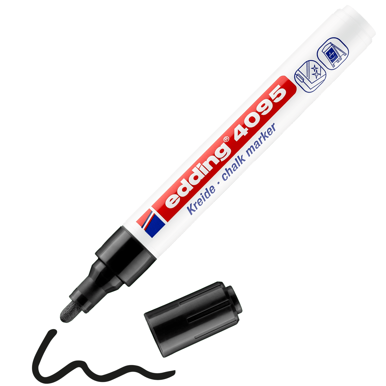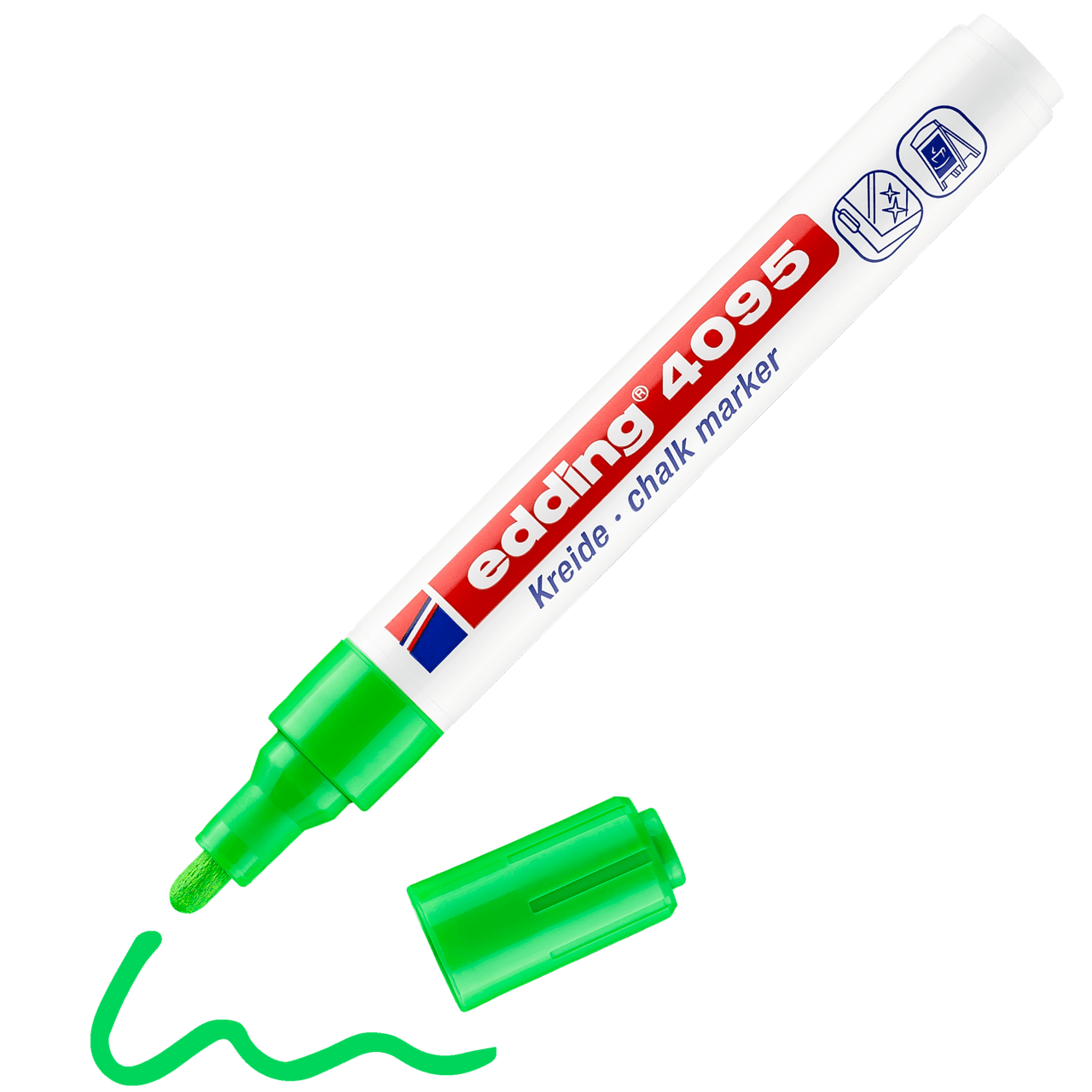 A veces es difícil encontrar la herramienta adecuada para marcar o escribir con tiza de manera precisa. Pero no con el marcador de tiza edding 4095: su punta redonda aplica la tiza líquida de gran cobertura y permite marcar con nitidez sobre superficies lisas, como pizarras, espejos y vidrio. Este edding no solo es adecuado para las manualidades creativas en el hogar, sino que también es la herramienta preferida en algunas actividades comerciales, como los restaurantes, los bares o la industria del vidrio.Los colores permanecen nítidos sobre la superficie y, no obstante, se pueden limpiar fácilmente con un paño húmedo. Con una amplia gama de colores, el marcador de tiza edding 4095 es tan versátil como diversos son sus usos.