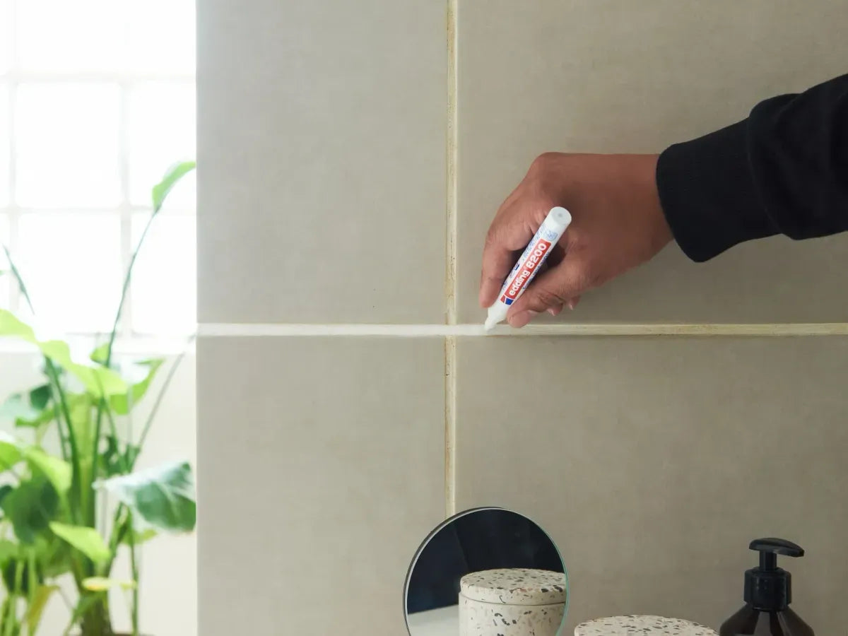 del marcador de juntas edding 8200 es resistente al agua y se adhiere a todo tipo de juntas. Su alta opacidad deja la lechada sanitaria vieja como nueva. Este marcador permite tratar las juntas de forma rápida y sencilla en zonas de difícil acceso. La punta precisa del rotulador permite aplicar la tinta exactamente en las zonas deseadas sin manchar los azulejos circundantes. Gracias a su aplicación precisa y limpia, el marcador de juntas edding 8200 es perfecto para corregir el color y abrillantar las juntas antiestéticas. Gracias a su impermeabilidad, el marcador también es apto para baños. La lechada se vuelve impermeable y a prueba de manchas en un instante . Si busca un color para juntas resistente al agua y duradero, el marcador para juntas edding 8200 es la opción perfecta. Comparado con la pintura para juntas tradicional, es más fácil de usar y no requiere una limpieza exhaustiva. Si desea que la lechada de sus azulejos luzca como nueva, le recomendamos probar nuestro marcador para juntas edding 8200. Con el marcador para juntas, puede aclarar, colorear o corregir la lechada de sus azulejos de forma rápida y sencilla.