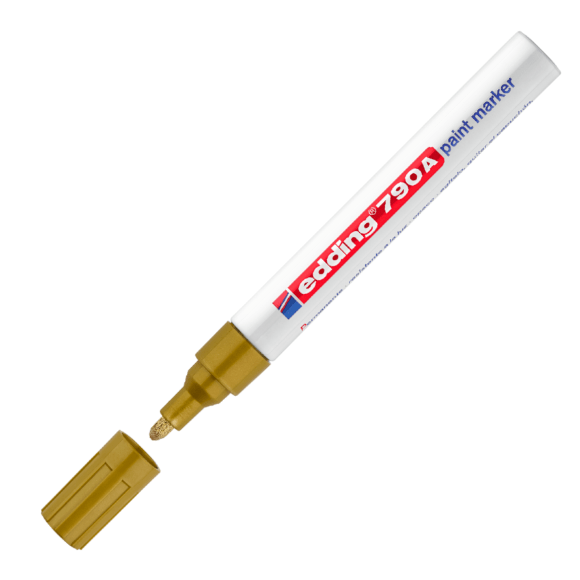 No importa cómo sea la superficie, lisa, rugosa o limpia y brillante, podrá marcarlas todas con el marcador de tinta opaca edding 790. Con su tinta de gran cobertura y efecto lacado, es idóneo para etiquetar multitud de materiales, incluso los oscuros, lo que lo convierte en un marcador versátil no solo para los apasionados del bricolaje. El marcador de tinta opaca edding 790 es resistente al agua, permanente y está disponible en varios colores.