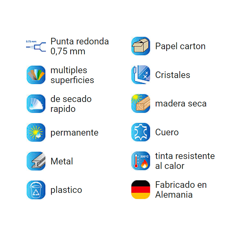 Superficies Cartón, cuero, madera, metal, papel, plastico