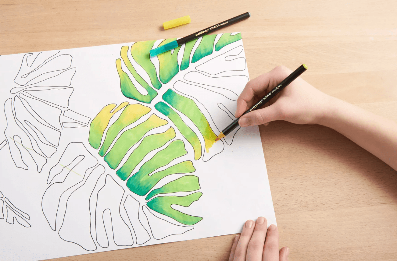 Este rotulador está equipado con una punta flexible de pincel con la que es un placer dibujar sobre papel y cartón. Podrá crear detalles delicados y trazos de pincel gruesos sin esfuerzo, incluso sobre superficies amplias. De esta forma, podrá insuflar vida a divertidos personajes de cómic o crear motivos florales en invitaciones o servilletas de papel. Este rotulador también es apreciado por su utilidad para colorear materiales blandos, como los sellos de goma. Es fácil colorearlos con la punta de pincel, y podrá utilizar varios colores en el diseño del sello.La punta de pincel suave y flexible de este rotulador crea preciosos resultados en muchos colores brillantes. Su tinta a base de agua tiene un olor neutro.
