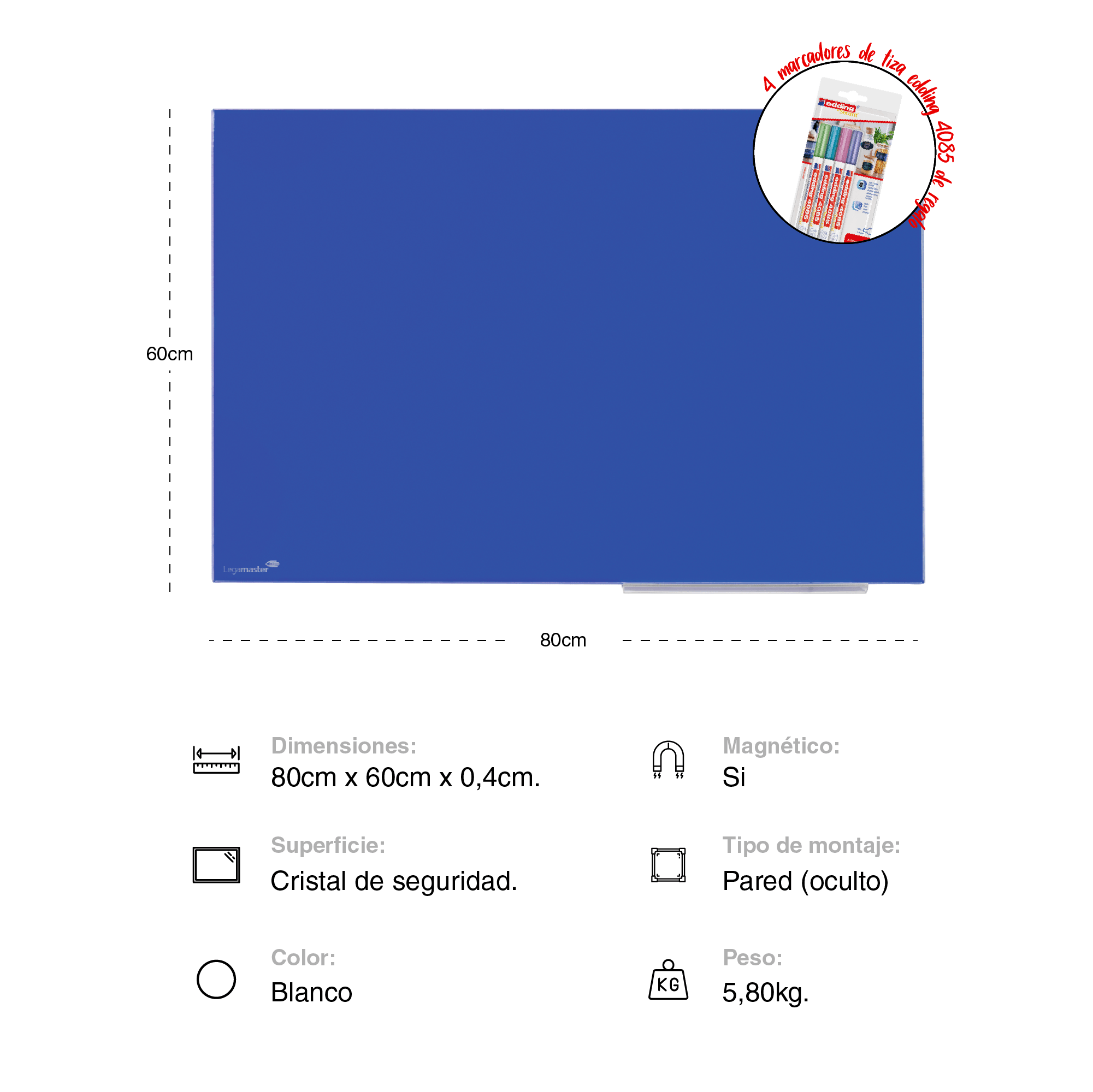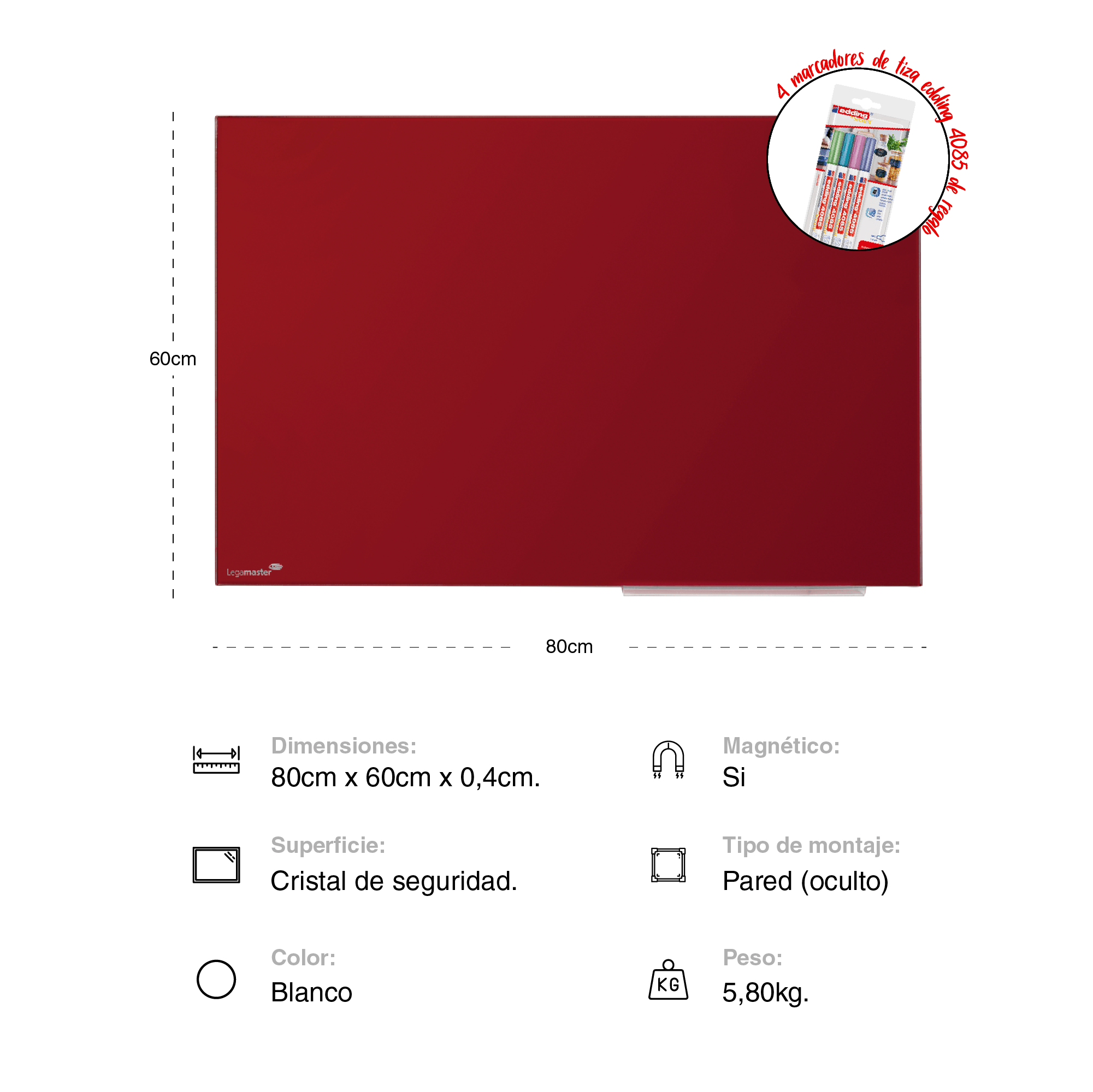 Pizarra de vidrio Legamaster 60 x 80 cm.