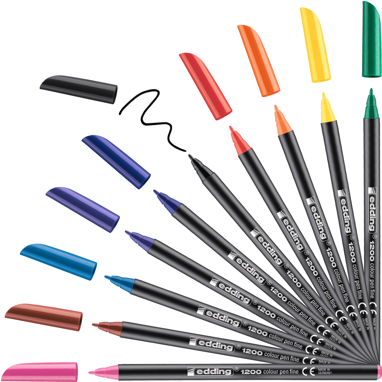 Puedes escribir, dibujar o esbozar sobre papel de colores claros con muchos tipos de rotuladores, pero con ninguno resulta tan fácil y agradable como con un rotulador de color. Su punta fina y redondeada parece deslizarse sola al escribir mensajes personales sobre la superficie de postales o tarjetas de felicitación. Hacer bocetos y dibujos espontáneos con un ancho de trazo uniforme te resultará pan comido con este rotulador clásico. Además, está disponible en muchos colores vivos.El edding 1200 rotulador de color de trazo fino tiene una punta redonda de 1 mm de grosor. La tinta del rotulador es a base de agua y resistente a la luz, con lo que se garantizan resultados duraderos sobre papel o cartulina de colores claros. El set contiene los colores negro, rojo, azul, verde, amarillo, naranja, marrón, violeta, rosa y celeste.